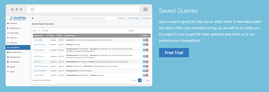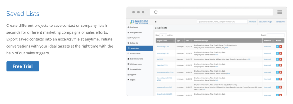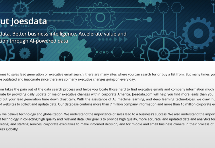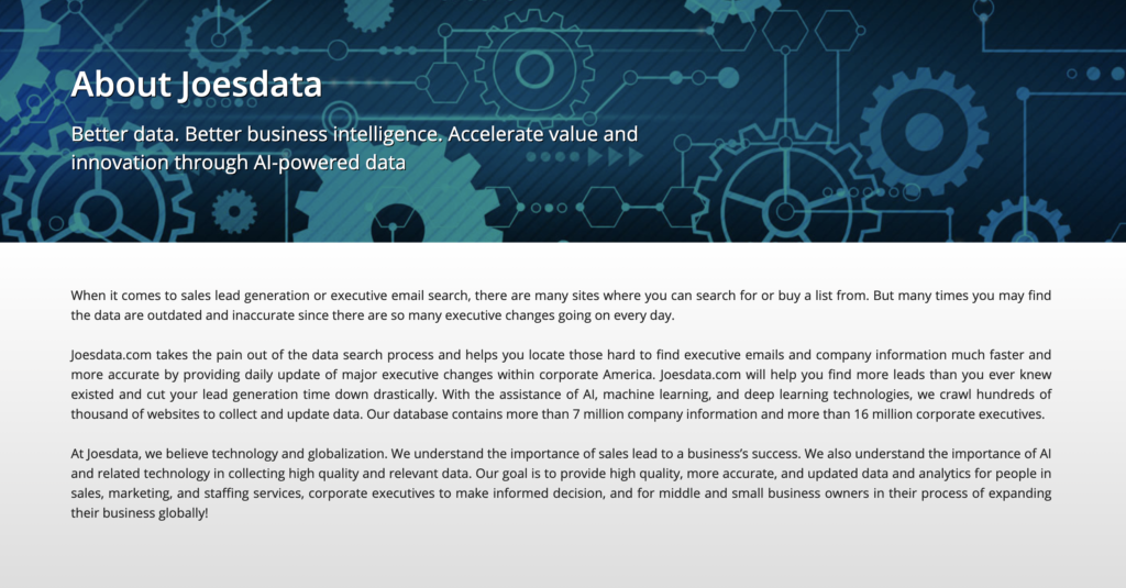 JoesData is data driven commercial website which allows users to get details of the companies and employees for better networking and lead generation.